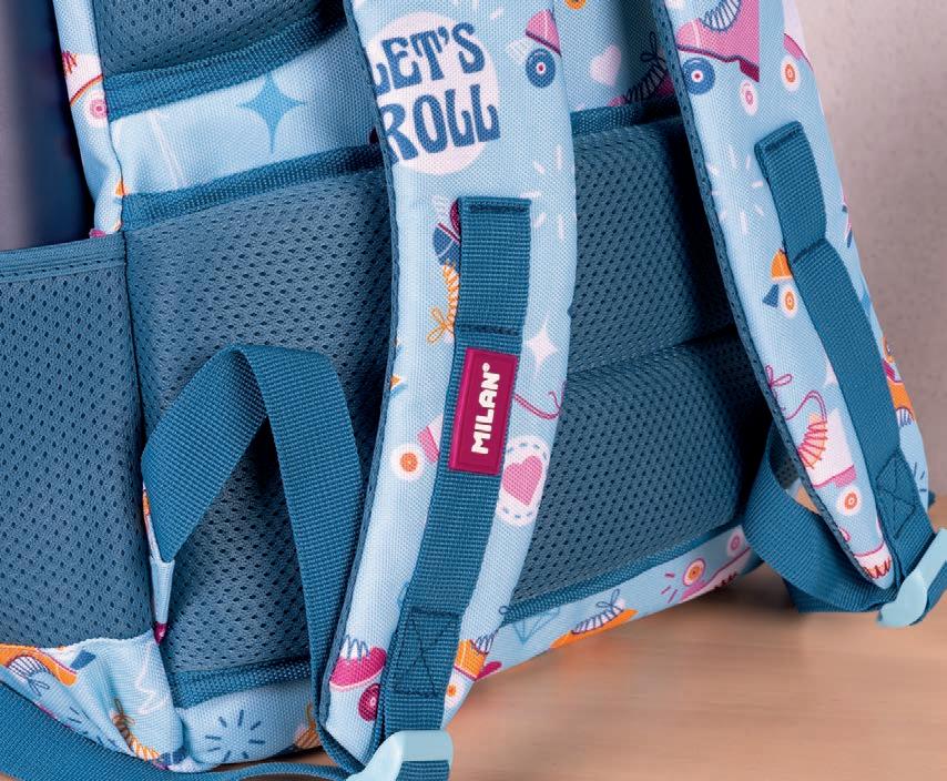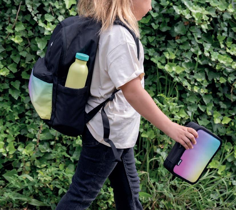 Questa serie comprende uno zaino, astucci, una borsa per il pranzo e articoli di cancelleria che conferiscono un carattere sobrio e senza tempo.