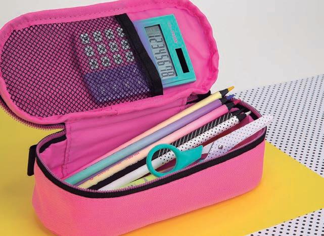 Accessori funzionali per scuola e ufficio in colori acidi e vibranti.