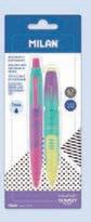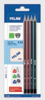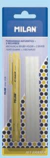 As lapiseiras MILAN são produtos únicos e reconhecíveis pelos seus desenhos originais e coloridos. Grande variedade de modelos com borracha e minas de diferente dureza e espessura.