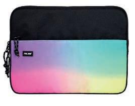 Uma combinação de cores gradientes inspiradas no pôr-do-sol acompanhadas de estampagens geométricas a preto e branco.