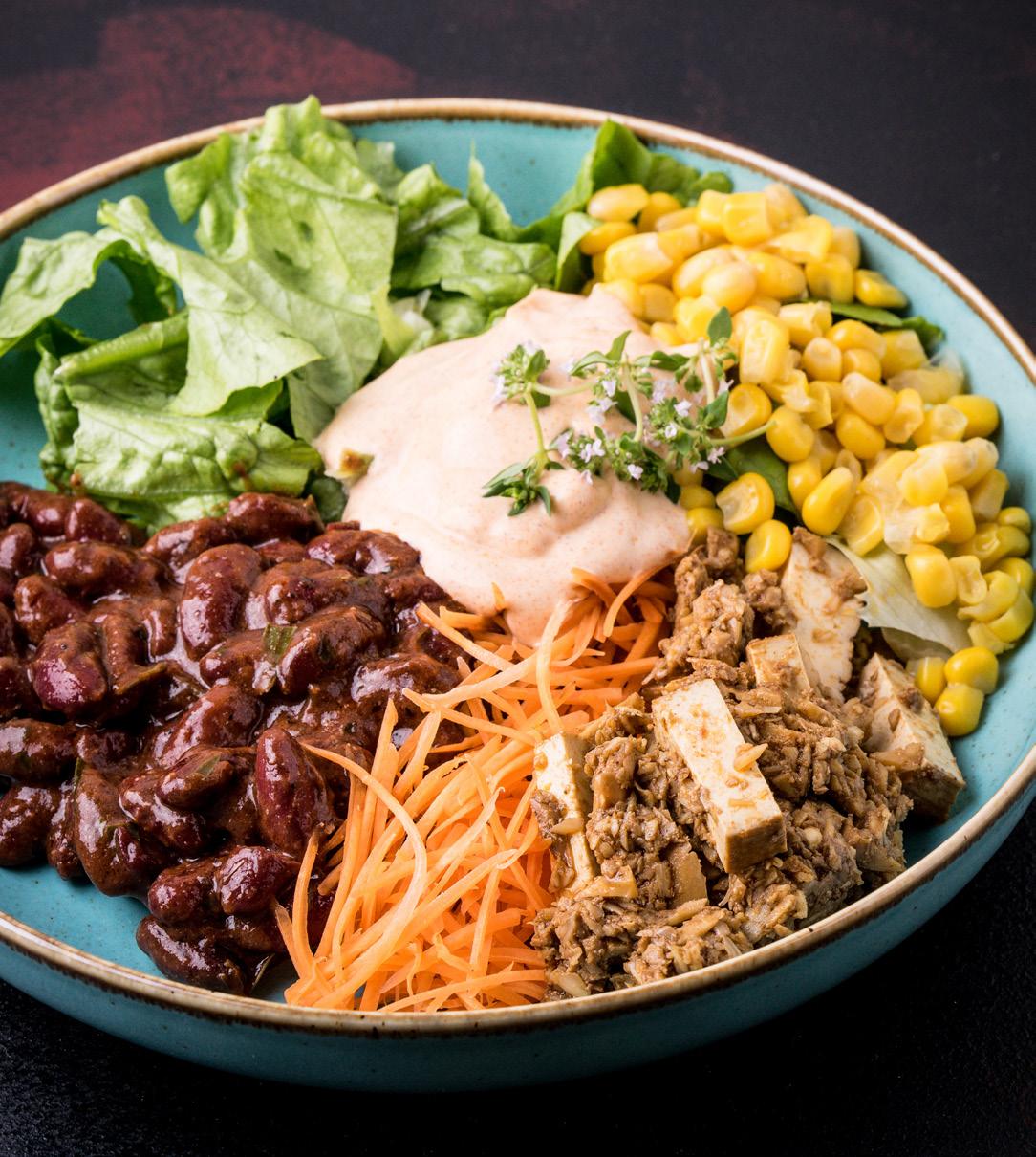 Vegetarian loaded bowl with chipotle lime & cilantro rice, bean & corn salsa, tomatoes, cucumbers, red onions, cheese, avocado, and finished with a chipotle drizzle - $12.95