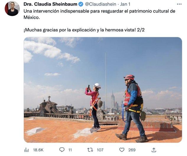 “Estamos aquí iniciando el año con el Cardenal Carlos Aguiar, a quien le agradecemos enormemente que nos haya permitido subir a este patrimonio histórico de nuestra ciudad y al Instituto Nacional de Antropología”, señaló en un vídeo difundido en sus redes sociales.