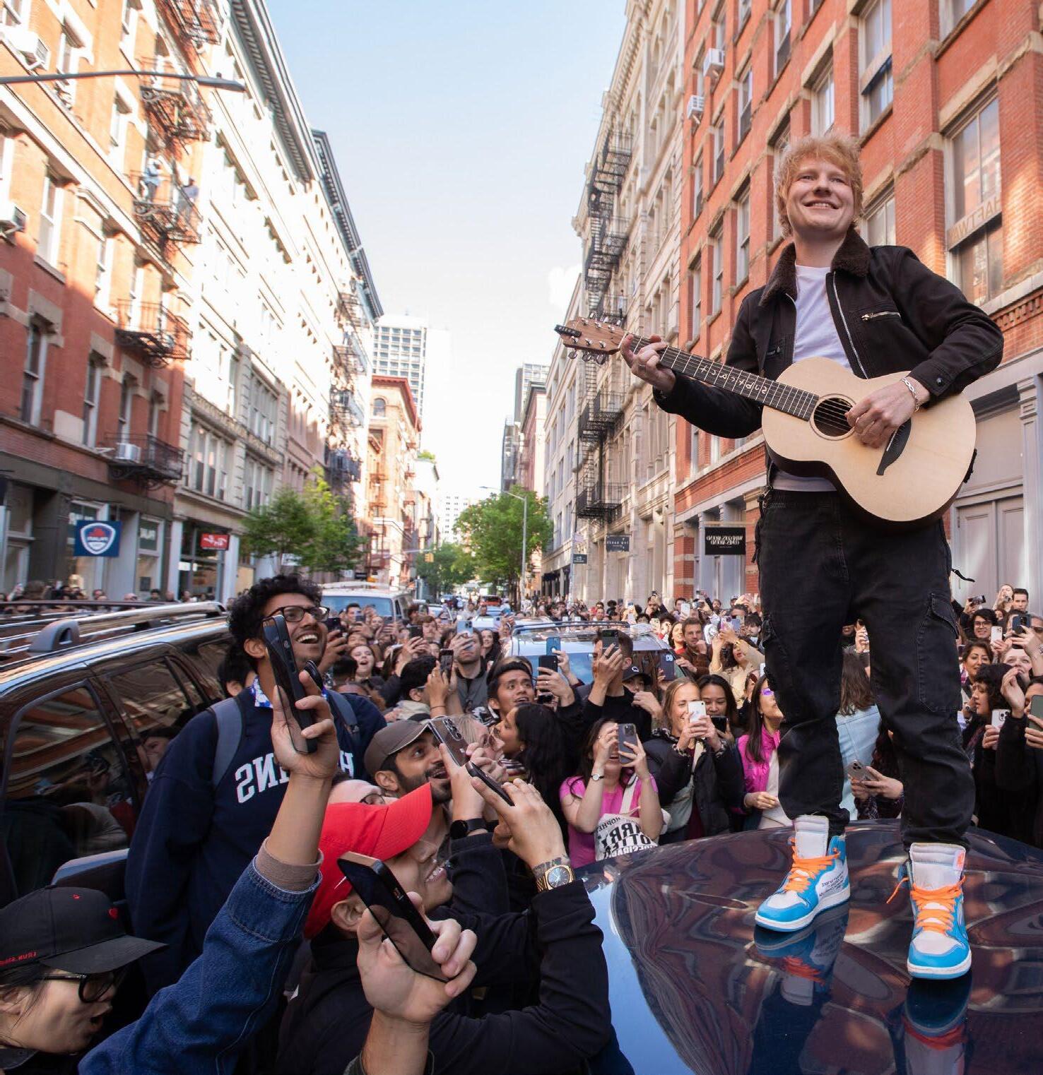 Ed Sheeran dio un gran regalo a sus fanáticos con una actuación sorpresa en la ciudad de Nueva York luego de ganar el juicio por presunto plagio debido a las similitudes que existían entre su éxito Thinking Out Loud con la canción Let’s Get It On, de Marvin Gaye. El famoso cantautor británico apareció en una tienda de discos en el barrio de Soho, donde fue recibido por cientos de fanáticos que gritaban, sacó su guitarra, se subió a la parte superior de un carro y comenzó a tocar algunos mayores éxitos, incluido el que lo llevó a juicio. Diversos fanáticos publicaron videos del mini concierto en las redes sociales, mostrando a Sheeran sonriendo y disfrutando de interpretar más de seis canciones a los presentes.
