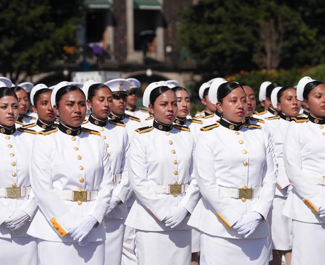 En el pase de lista de honor, se rindió tributo a los protagonistas de las gestas heroicas de 1847 y 1914: el teniente Juan de la Barrera; los cadetes Juan Escutia, Agustín Melgar, Vicente Suárez, Fernando Montes de Oca y Francisco Márquez (conocidos coloquialmente como los “Niños Héroes”); además del teniente José Azueta y el cadete Virgilio Uribe, ambos del Colegio Naval. Una salva de fusilería cerró el homenaje a estas figuras históricas. Los cadetes María Fernanda Ángeles García y Javier Enrique Valencia Avendaño declamaron la poesía “9 de febrero, juramento de honor y lealtad”, resaltando los valores que representa la conmemoración. El general Ricardo Trevilla Trejo expresó que las Fuerzas Armadas seguirán leales al pueblo y respaldando al mando civil. Destacó que, frente a cualquier adversidad, la unidad entre sociedad, Gobierno y Fuerzas Armadas es esencial para proteger el bienestar de las familias mexicanas y la seguridad de México.