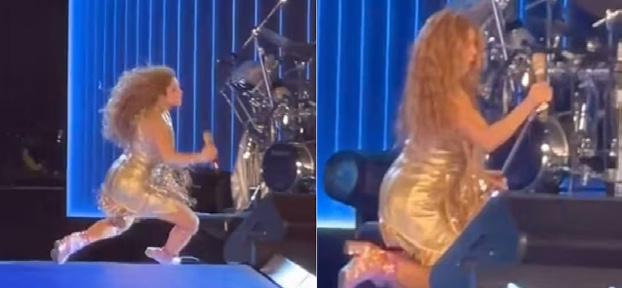 La gira “Las mujeres ya no lloran” de Shakira tuvo un momento inesperado durante la visita de la cantante a El Salvador. Este pasado fin de semana, la artista colombiana llegó al país centroamericano para ofrecer el primero de cuatro conciertos en el Estadio Nacional Jorge “El mágico” González. El recinto lució completamente abarrotado y aunque el espectáculo transcurría con normalidad, un accidente en pleno escenario terminó robándose la atención y hasta se hizo viral en las redes sociales. Todo ocurrió mientras Shakira interpretaba el tema “Si te vas” frente a los miles de asistentes reunidos. La colombiana, ya con la emoción del show, tomó el pedestal del micrófono y lo alzó para realizar una secuencia de baile; pero cuando se disponía a cambiar de lugar, un resbalón la hizo caer al suelo con todo y micrófono.