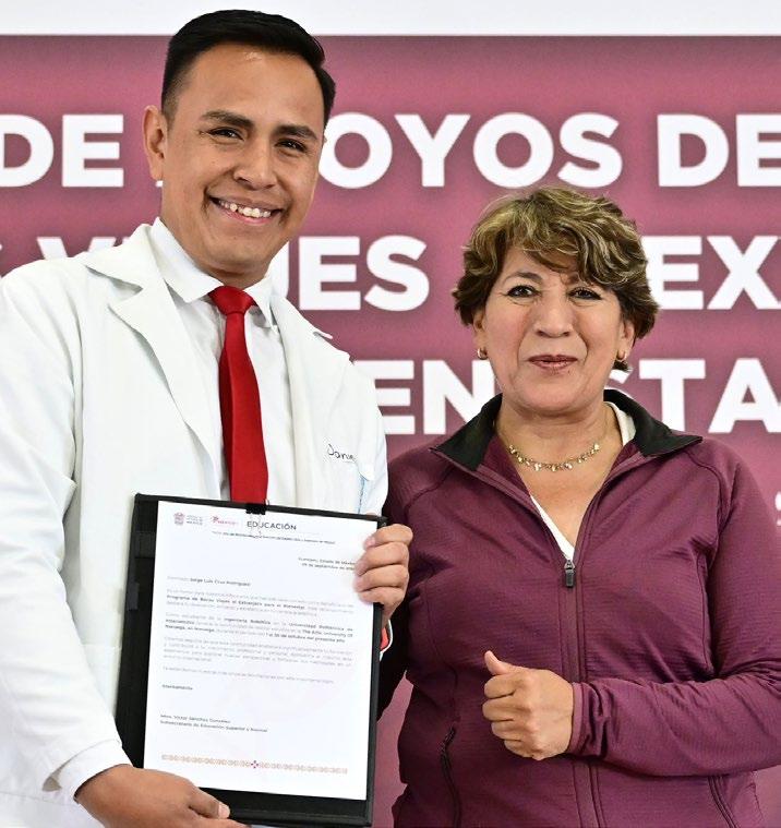 viaje y que el programa “Becas Viajes al Extranjero para el Bienestar” 2024 contribuya a transformar su vida personal y académica. Por su parte, Miguel Ángel Hernández Espejel, Secretario de Educación, Ciencia, Tecnología e Innovación, señaló que el Programa “Becas Viajes al Extranjero para el Bienestar” 2024, refleja el espíritu de la Nueva Escuela Mexicana que pone a las personas en el centro con un enfoque humanista y busca darles a todas y a todos, las mismas oportunidades de crecimiento y desarrollo. Explicó que el programa beneficiará a estudiantes que cursan el séptimo semestre o quinto cuatrimestre en alguna institución pública de nivel superior de la entidad, mismos que recibirán un monto de 350 mil pesos cada uno. Agregó que los jóvenes son el motor del cambio, por lo que el Gobierno del Estado de México impulsa su talento para que traspasen las fronteras y con el conocimiento adquirido contribuyan a la transformación del Estado de México. Acompañaron a la Gobernadora del Estado de México, el Rector de la Universidad Estatal del Valle de Ecatepec, Eder Josseman Castro Martínez; así como becarias, becarios y sus familias.