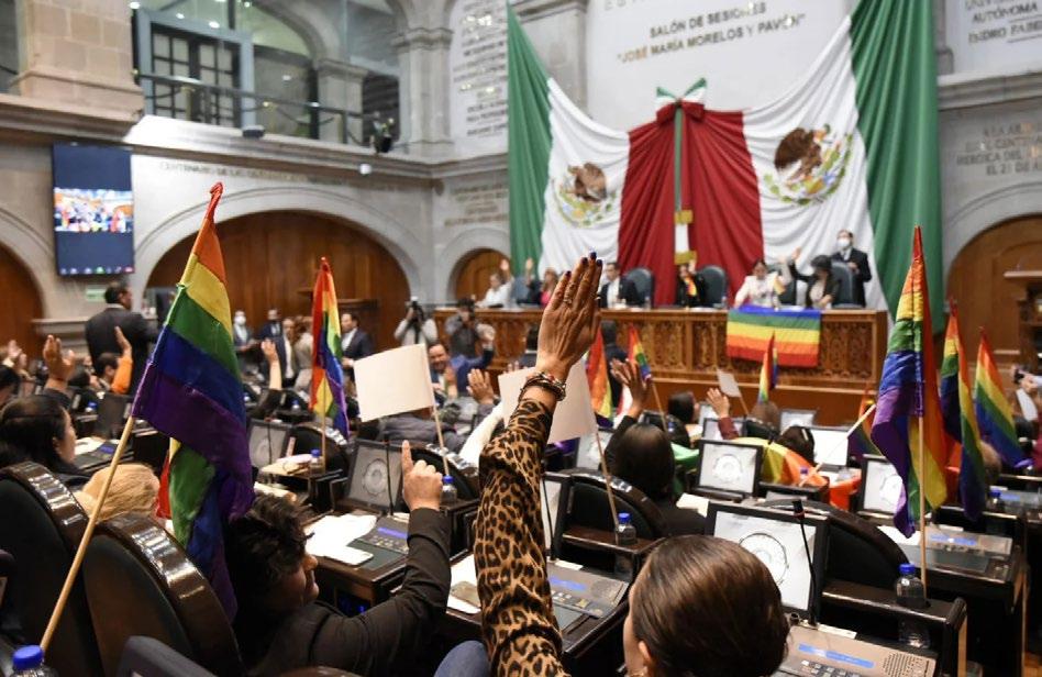 leer el dictamen, comentó: “Con la aprobación de este dictamen se ampliarán las oportunidades y derechos de las y los mexiquenses”. Asi mismo, agregó que el triunfo no es de ellas y ellos como diputados sino de los cientos de colectivos, “es de ustedes y para ustedes”. Por su parte, la diputada Elida Castelan lamentó que la legislatura llegara tarde a la aprobación del matrimonio y concubina tos igualitarios. “Aportamos un antecedente y conse cuente en favor al combate al estigma, al prejuicio y a la cerrazón de las mentalidades inflexibles”, señaló.