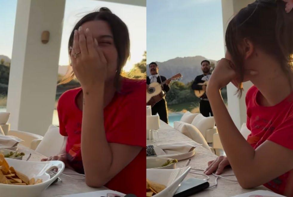 ver a Hailey sentada en un jardín decorado con flores, cuando aparece un grupo de mariachis interpretando “Cielito lindo”.