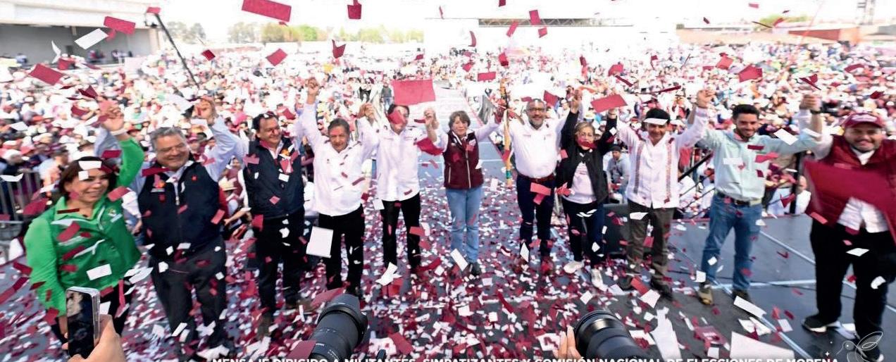 más de 400 mil simpatizantes y militantes de las más de 6 mil secciones que integran en Edomex, y también se declaró ganador de la precampaña. “Ganamos la precampaña porque somos más, ganamos porque estamos unidos porque nos unen ideales de transformación y no intereses de privilegio, ganamos la transformación porque estamos organizados desde las 6 mil 500 secciones; porque se tiene de nuestro lado a este movimiento nacional”, dijo. Delfina Gómez ofreció no fallar si gana las elecciones del 5 de junio “trabajaremos día y noche para que la cuarta transformación llegue a cada rincón del Estado de México y desterremos para siempre el fraude y la humillación al pueblo”, dijo ante militantes. “Frente al odio de los de siempre, el amor del pueblo, frente a la mentira conservadora, la verdad transformadora y frente al chantaje de los corruptos, la dignidad de los morenistas mexiquenses que ni se compra, ni se vende”