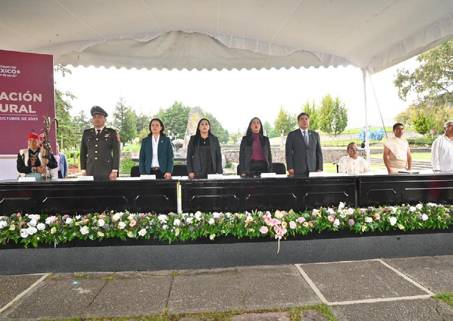La diputada Martha Azucena Camacho Reynoso, presidenta de la Directiva, y la legisladora Paola Jiménez Hernández, ambas del Grupo Parlamentario de morena, participaron en la conmemoración del Día de la Nación Pluricultural, encabezada por Nelly Minerva Carrasco Godínez, secretaria de Cultura y Turismo estatal, en representación de la gobernadora Delfina Gómez Álvarez.