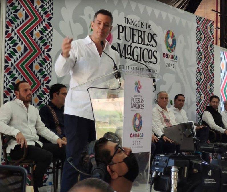 Santa Lucía del Camino.— Con la presen cia de autoridades de los tres niveles de gobierno este miércoles dio inicio el “Tianguis de Pueblos Mági cos 2022”, que este año tiene como sede a Oaxaca y que rompió récord en el número de prestadores de servicios turísticos que se dieron cita desde todo el país. En el Centro Cultural y de Convenciones de Oaxaca (CCCO), el gobernador Ale jandro Murat Hinojosa y el secretario de Turismo del Gobierno de México, Miguel Torruco Marqués, inauguraron la cuarta edición de este evento que hasta el 14 de octubre reúne a los 132 pue blos que cuentan con esta distinción “para promover la diversificación de mer cados al exterior del país, explorar nuevos nichos y posicionarse en la preferen cia de los visitantes de todo el mundo”. De acuerdo con cifras oficiales, fueron dos
