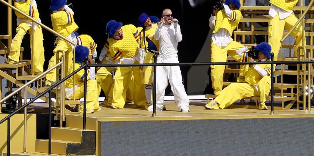 J Balvin brilló este domingo en el espectáculo del medio tiempo durante la final del Mundial de Clubes de la FIFA, que además contó, como sorpresa, con la actuación de Coldplay. Enfundado en un vestuario completamente blanco, el reggaetonero apareció sobre un escenario en la parte más elevada del MetLife Stadium de Nueva Jersey, el cual contrastaba con los bailarines, quienes aparecieron con colores amarillo, azul y rojo, característicos de la bandera colombiana. Balvin abrió su show con “Mi gente”, uno de los éxitos más grandes de su carrera,