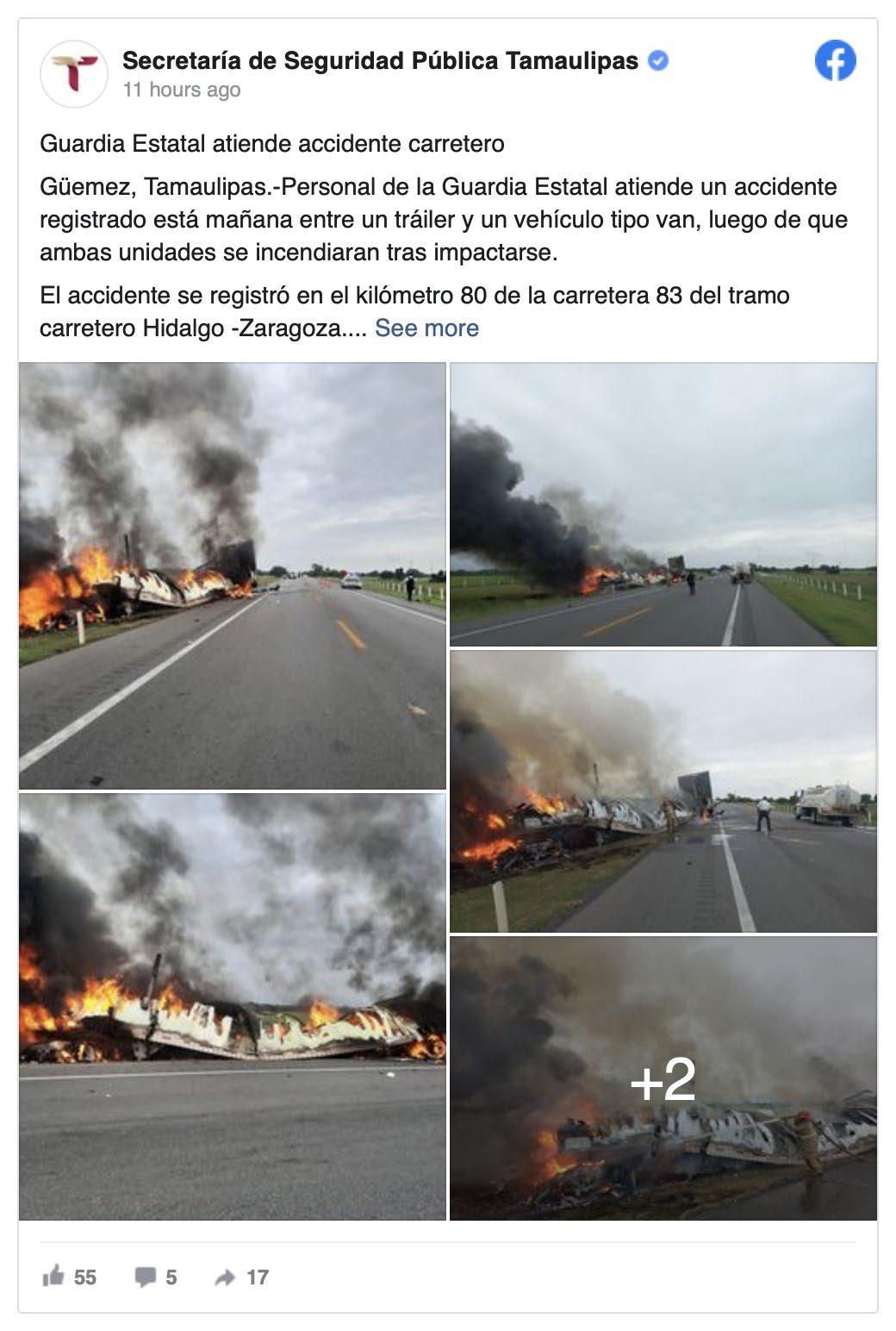 El accidente se registró en el kilómetro 80 de la carretera 83 del tramo que conecta la carretera VictoriaMatamoros con la Victoria-Monterrey”