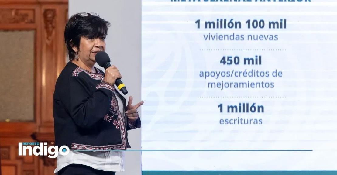“En particular: población no derechohabiente de la Comisión Nacional de Vivienda, 500 mil; 600 mil, a través del Infonavit; y 100 mil a través de FOVISSSTE”, explicó la funcionaria en la “mañanera del pueblo”