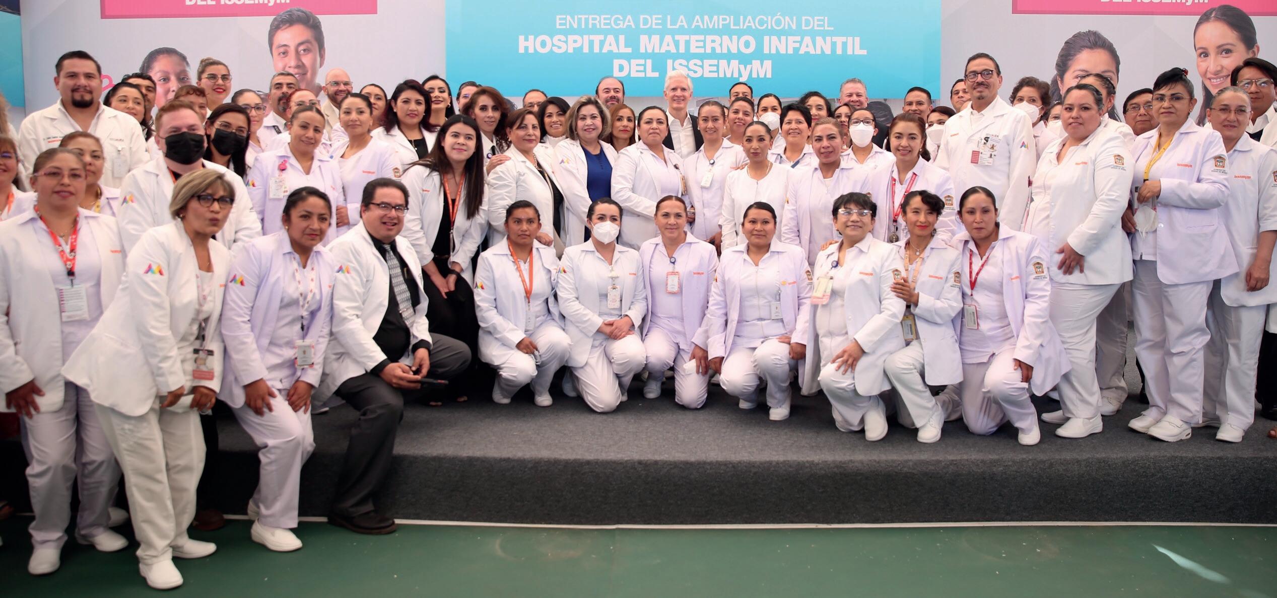 Este Hospital es uno de los cuatro que otorgan servicios de especialidad en la región del Valle de Toluca y, producto de su ampliación, pasó de 27 a 55 camas en el área de ginecobstetricia, de 36 a 68 cunas en el área de neonatología e incrementó en 58 por ciento su infraestructura en general. Además, dijo, cuenta con terapia intermedia e intensiva, con espacios especializados para cuando haya una infección, y otro espacio por completo para los bebés foráneos que también se atienden en esta institución. “La realidad es que es un gran orgullo ver lo que se ha logrado y nos da mucho gusto que hoy podamos estar haciendo entrega de esta nueva etapa, para el bien de las familias mexiquenses”, resaltó el mandatario estatal. Al evento asistieron médicos, enfermeras, directores de hospitales, personal administrativo y líderes sindicales, reunidos en las instalaciones de este Hospital, Del Mazo Maza consideró que, al contar con 835 mil derechohabientes, es indispensable fortalecer al ISSEMyM, e informó que a la fecha el Instituto tiene