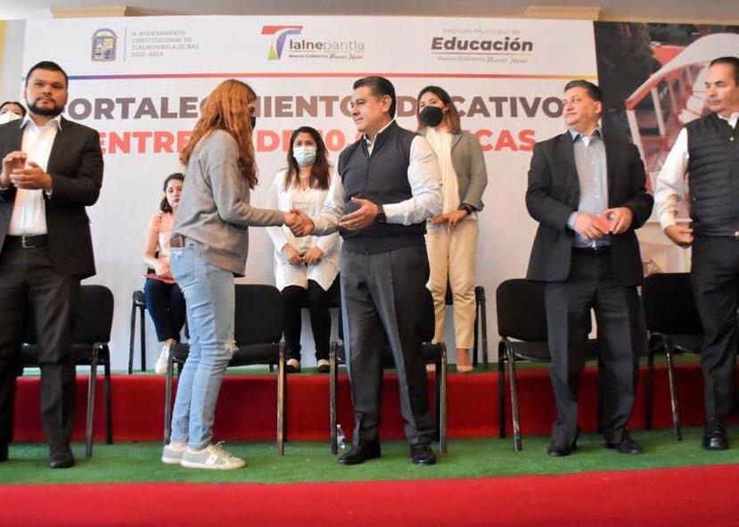 “Hoy las cosas son más difíciles cada día, y lo poco, lo mediano y lo mucho que hagamos, lo hacemos con todo corazón y convicción para que tengamos niños y niñas, jóvenes que se preparen para esta difícil situa ción porque las cosas son de más dificultad, pero tam poco nos achicopalamos, sabemos salir adelante. Los tlalnepantlenses sabemos cómo sortear las cosas”, afirmó. Acompañado de su esposa María Gómez; el secretario del Ayuntamiento, Edmundo Ranero; la titular del Instituto Muni cipal de Educación, Alina Luna; Marlene Rubí Muñoz, representante de la sección 36 del SNTE; integrantes del Comité de Becas; los regidores Mauricio Ontiveros, Iván Gatica, Samuel Ugalde y Carlos Alberto Cruz.