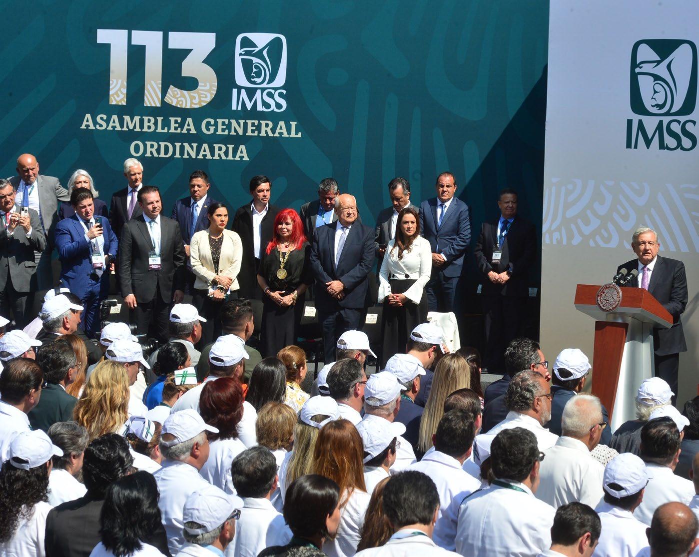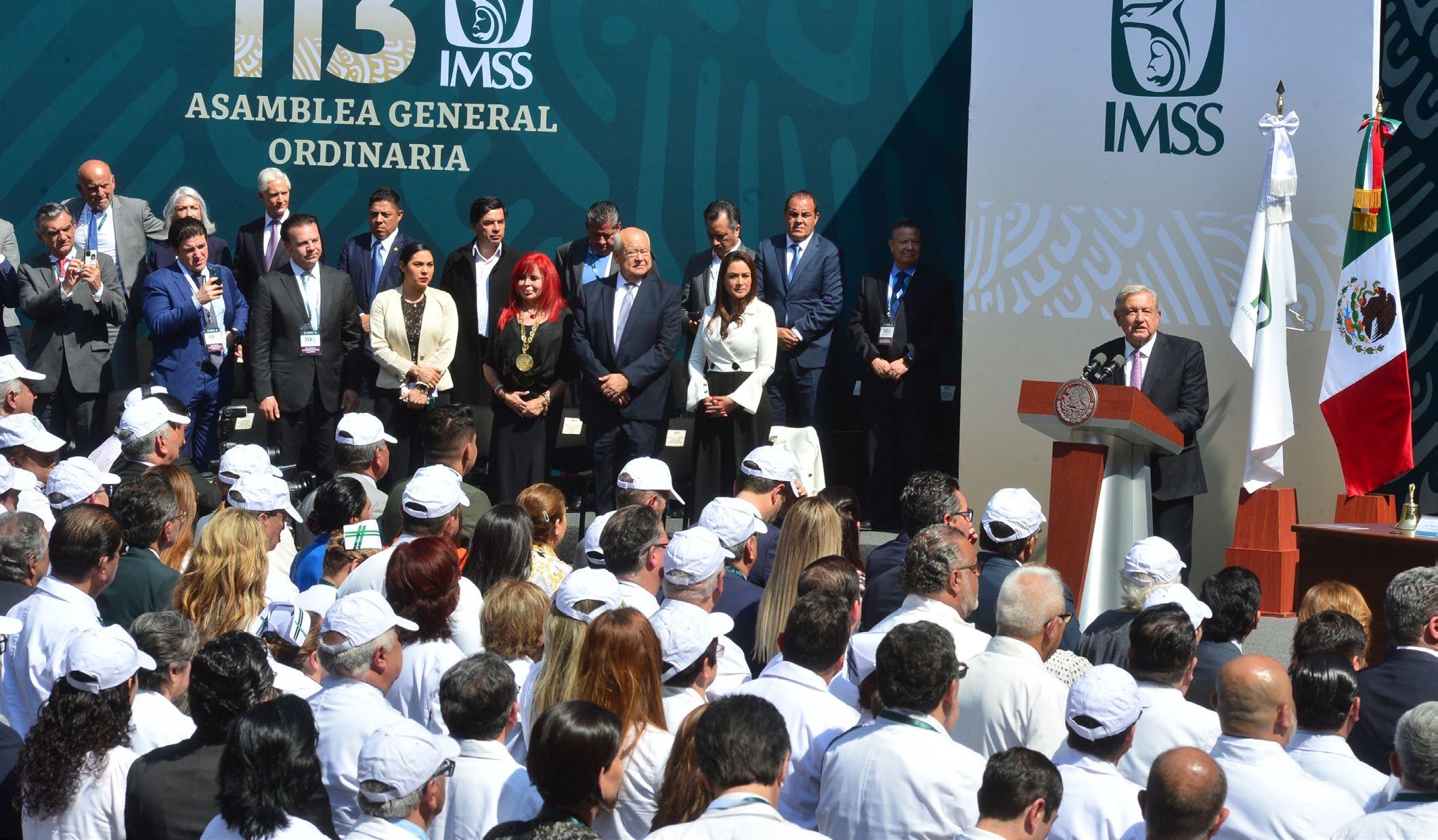 Durante esta Asamblea el director general del IMSS, Zoé Robledo, rindió su Informe de Labores 2021-2022 y el Pro grama de Actividades 2022-2023 ante el presidente de la República, goberna doras y gobernadores, 13 secretarias y secretarios de Estado e integrantes de la Asamblea de la Fundación IMSS. En este marco Zoé Robledo destacó que “IMSS-Bienestar es la pieza que hacía falta para consolidar y sostener un