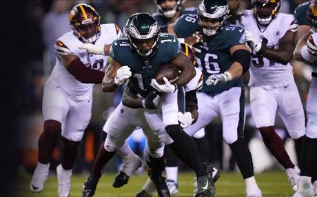 a una intercepción de Darrick Forrest; su ofensiva convirtió el error de Eagles en siete puntos con touchdown de Brian Robinson. Washington se fue al descanso arriba 20-14 gracias al gol de campo de 58 yardas que conectó Joey Slye; y de regreso en el tercer cuarto se alejó 23-14 por la misma vía de una patada de tres puntos. Justin Hurts vol vió a meter a su equipo al partido, 23-21, en una serie de 80 yardas que terminó en un envío de anotación para DeVonta Smith al inicio del último periodo.