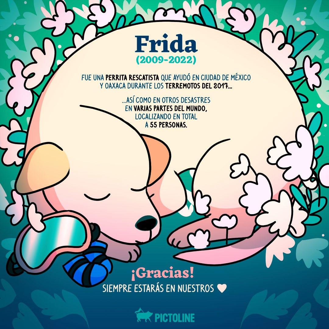 Frida, la famosa perrita rescatista de la Marina murió este martes 15 de noviembre, a los 13 años, informó la Semar en un comunicado. “Falleció esta tarde en la Ciu dad de México, en instalaciones del Subgrupo de Control Canino, lugar que fue su hogar durante sus últimos años de vida, a causa de padecimientos propios de su edad”, detalló la Semar. La rescatista Frida fue una labrador de color miel, que nació el 12 de abril de 2009, en la Unidad Canina de la Secretaría de Marina, ahora Subgrupo de Control Canino, perteneciente al Estado Mayor General de la Armada de México. Aunque Frida se hizo famosa como perrita rescatista tras los sismos de septiembre de 2017, su entrenamiento empezó desde sus primeros días de nacida. Desde cachorra, sus entrenadores observaron en ella cualidades ideales para llevar a cabo funciones dentro de las filas de la Armada de México. La Marina destacó que entre sus cualidades, Frida mostró siempre independen cia, concentración, temperamento equilibrado, intrepidez, curiosidad, fácil habituación a diferentes ambientes, mucha disposición al juego, facilidad de aprendizaje, empatía hacia las personas y facilidad para la convivencia social. Aunque el entrenamiento de búsqueda y rescate de un perro dura aproximadamente 12 meses; Frida lo completo en ocho meses.