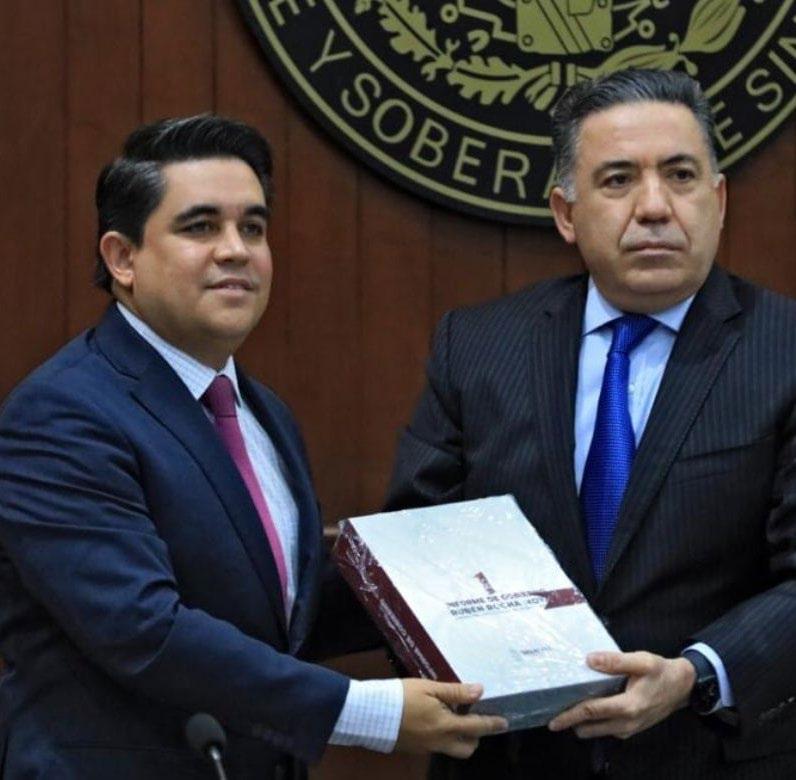 Inzunza Cazarez, pocos minutos antes de hacer entrega del documento al presidente de la Mesa Directiva del Congreso del Estado, Ricardo Madrid Pérez y al presidente de la Junta de Coordinación Política del Congreso del Estado, Feliciano Castro Melendrez indicó que, en el renglón de la seguridad, se tienen una baja en los deli tos de alto impacto. M