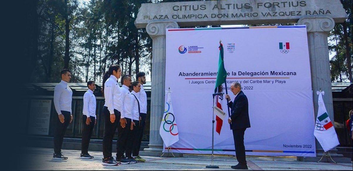 encabezaron la Ceremonia de Abande ramiento de la delegación tricolor que participará en los primeros Juegos Cen troamericanos y del Caribe Mar y Playa 2022, en Santa Marta, Colombia. En su mensaje, Alcalá aseguró que quienes integran esta delegación son los mejo res deportistas del país y por esfuerzo propio se ganaron esta oportunidad.