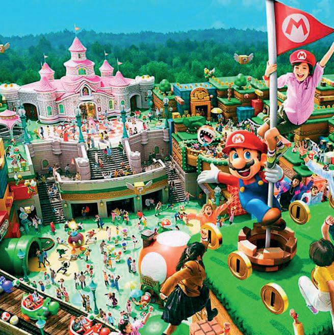 El castillo del malvado Bowser y el de la princesa Peach, grandes hongos rojos, y las clásicas plantas piraña saliendo de las tuberías, forman parte de la experiencia