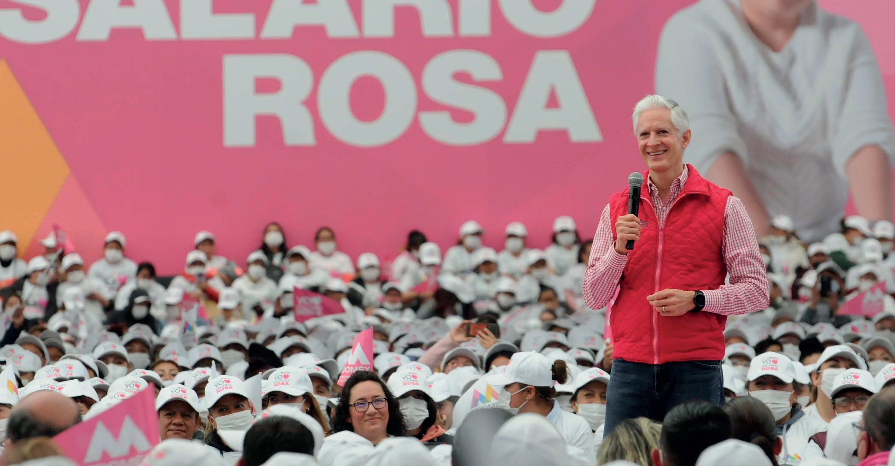 El gobernador del Estado de México, Alfredo del Mazo Maza llevó a cabo la entrega de 12 mil tarjetas del programa Salario Rosa a mujeres amas de casa de 34 municipios, con lo que suman 700 mil las que se han entregado en la entidad durante los casi seis años que lleva el programa. “Hoy es un día especial para el Salario Rosa, porque hoy llegamos a 700 mil mujeres, 700 mil familias que reciben el programa del Salario Rosa, 700 mil mujeres a las que se les está cambiando la vida gracias a este programa del Salario Rosa, para que ustedes puedan apoyar a sus hijos, a su hogar, a toda su familia, invertirlo en lo que ustedes necesiten, en lo que ustedes deseen”, dijo.