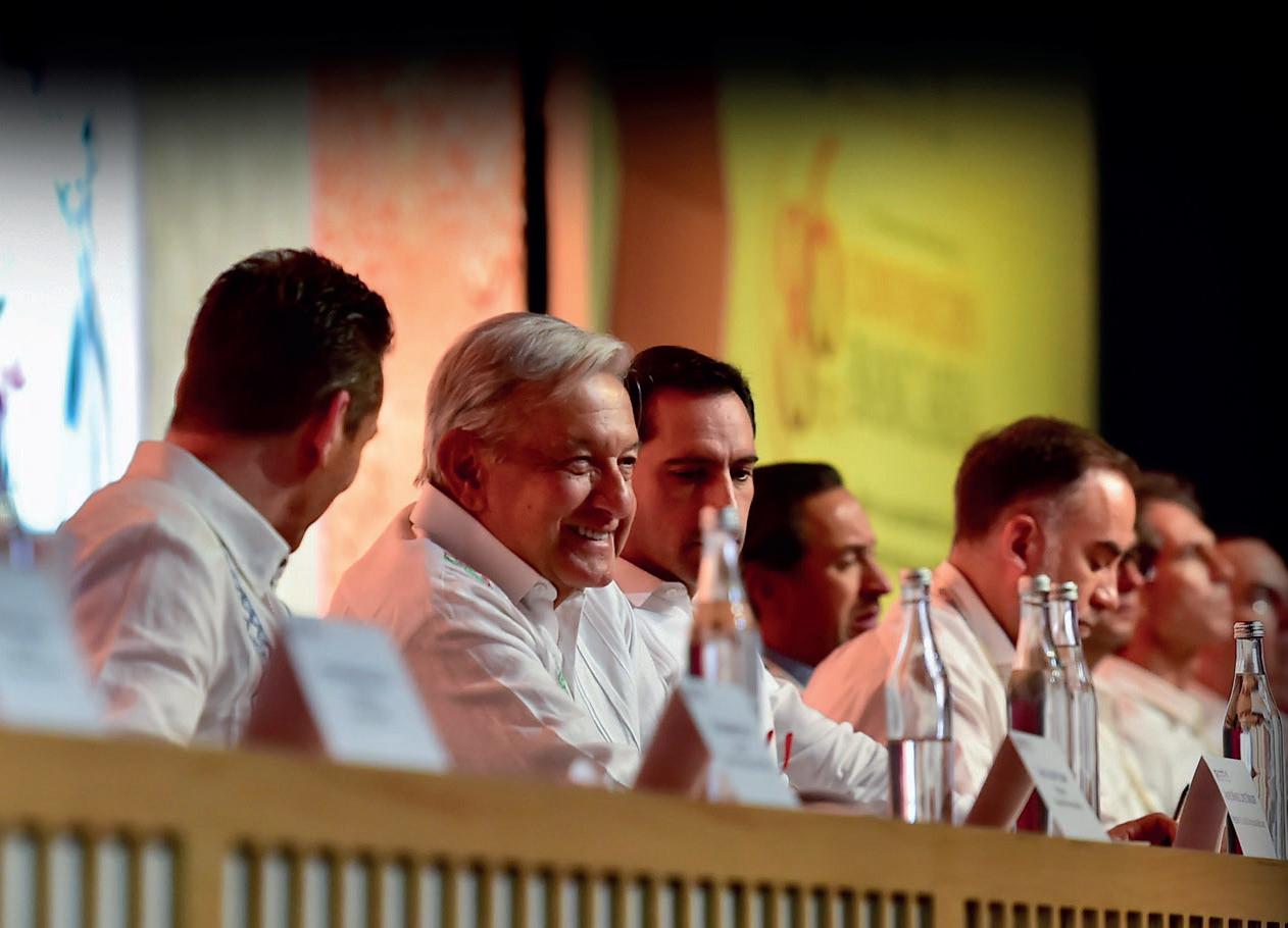 incrementado en 90% en términos reales, “lo que no sucedía en cuatro décadas”. Destacó que su gobierno está dispersando este año 600 mil millones de pesos en programas de bienestar en beneficio de 25 millones de hogares, lo que se traduce en que 71% de las familias del país esta recibiendo un apoyo de manera directa y es algo que “nunca se había hecho en la historia”. El presidente López Obrador indicó que se tiene récord en captación de remesas al sumar año 58 mil 510 millones de dólares y agregó que este año se van a destinar más de un billón de pesos en obras de infraestructura y la cual “es una cifra récord en inversión publica”. Destacó que el peso es la moneda que más se ha apreciado con relación al dólar en el mundo y es algo que, aseguró, no sucedía en cuando menos 50 años, e informó que se tienen reservas en récord en el Banco de México (Banxico) de 200 mil millones de dólares. Como último punto, el presidente López Obrador señaló que el reporte de utilidades del año pasado para la banca múltiple mexicana fue de 236 mil 743 millones de pesos “algo nunca visto”. “Nunca se habían obtenido estas utilidades para los bancos”, destacó. Tras participar en la inauguración de la Convención Bancaria, el presidente López Obrador tomará un vuelo rumbo a Villahermosa, Tabasco, para mañana viernes encabezar la reunión del Gabinete de Seguridad y la conferencia matutina. M