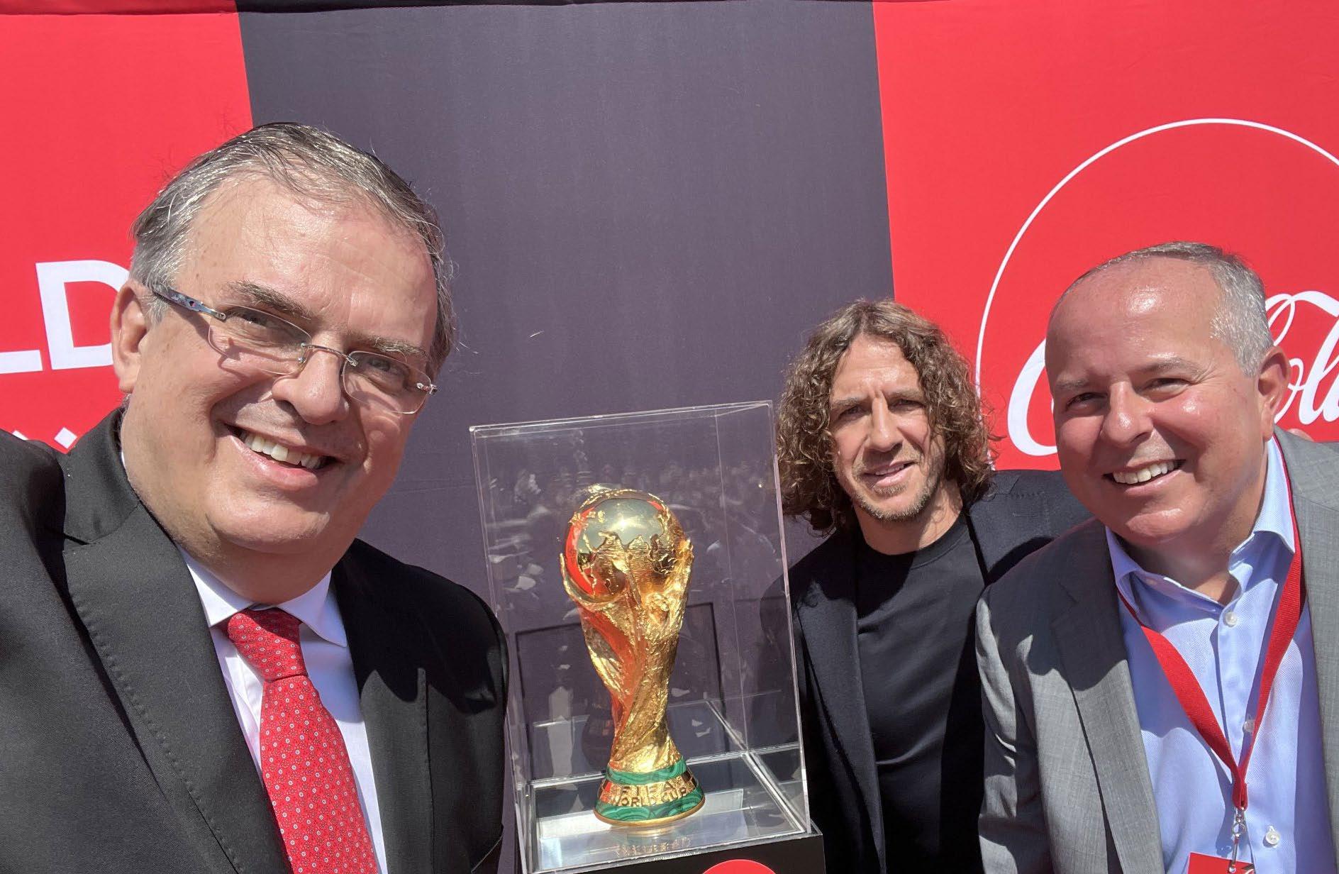 Desde el InternacionalAeropuerto Felipe Ángeles (AIFA), Marcelo Ebrard agradeció que Coca ColaFEMSA, haya elegido a México como el primer lugar en Latinoamérica para mostrar la tan ansiada Copa del Mundo: “México es un gran país, tenemos que tener confianza en nosotros. Un día vamos a