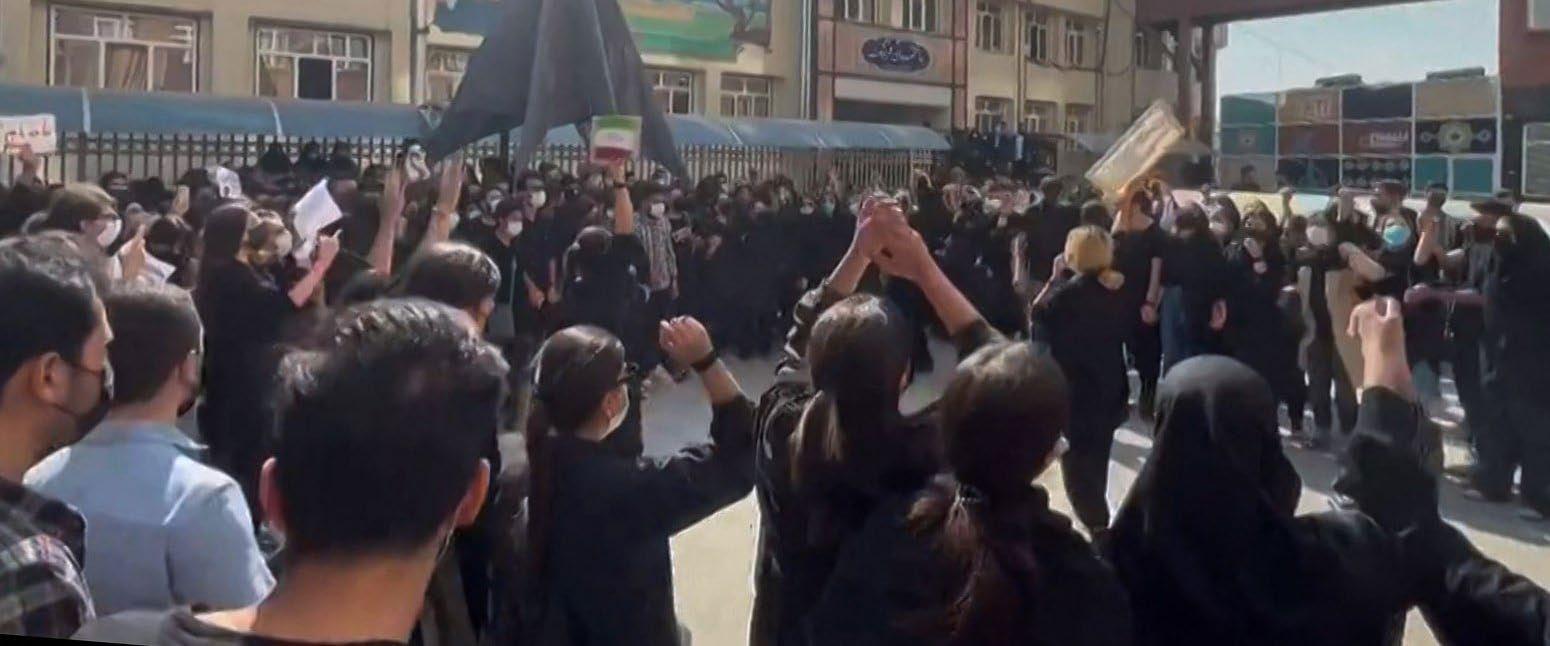 “¡Libertad, libertad, libertad!”, gritaban unas mujeres jóvenes en un centro educativo en Teherán, al tiempo que hacían ondear sus velos al aire, indicó 1500tasvir.