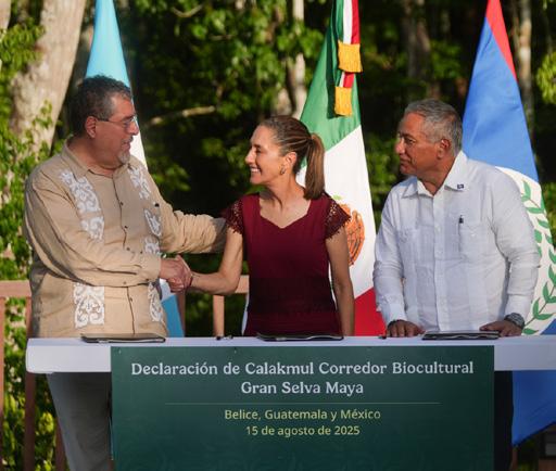 La agenda internacional se desarrolló en Guatemala, donde sostuvo un encuentro bilateral con el presidente Bernardo Arévalo. Ambos mandatarios ratificaron compromisos en seguridad, migración, energía, infraestructura ferroviaria y medio ambiente, buscando beneficios conjuntos. La visita a Campeche marcó un hecho histórico: Sheinbaum, junto a Arévalo y al primer ministro de Belice, John Briceño, firmó el acuerdo para poner en marcha el Corredor Biocultural Gran Selva Maya, destinado a proteger 5.7 millones de hectáreas del principal bosque tropical de Mesoamérica. En el mismo estado, inauguró el Centro LIBRE para las Mujeres de Calakmul. La gira concluyó en Ecatepec, Estado de México, donde la presidenta inauguró la Unidad de Medicina Familiar No. 93 del IMSS, que dará servicio a 352 mil derechohabientes. Con estas acciones, la mandataria mexicana cerró un recorrido que combinó diplomacia regional y atención a proyectos prioritarios en territorio nacional.