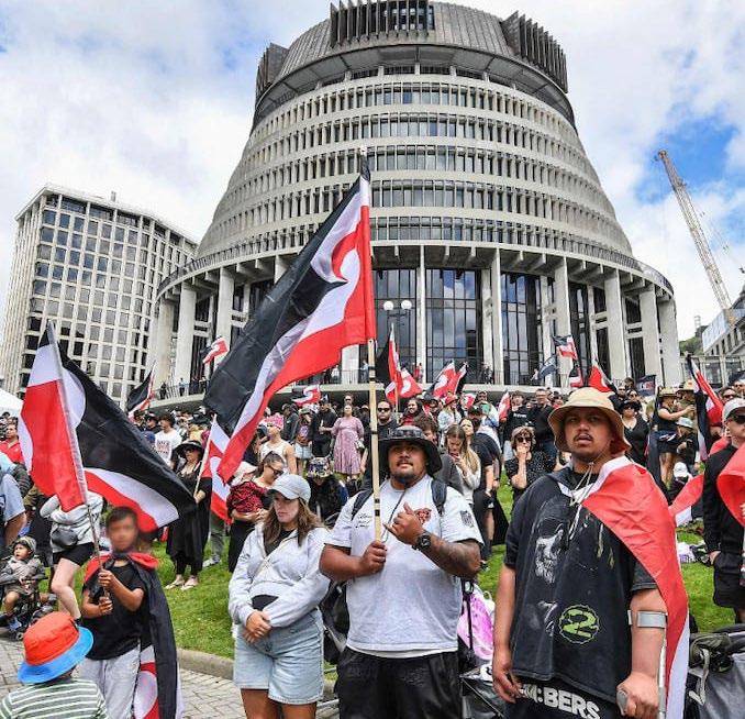 El motivo de la protesta es una propuesta de ley de un partido que quiere redefinir el Tratado de Waitangi del siglo XIX entre los colonos europeos y los líderes maoríes
