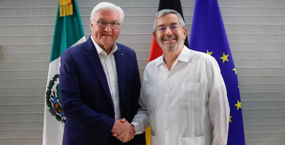 El titular de la Secretaría de Relaciones Exteriores (SRE), Juan Ramón de la Fuente, recibió en Quintana Roo al mandatario de Alemania, Frank-Walter Steinmeier, quien llegó al país para llevar a cabo un encuentro con la presidenta Claudia Sheinbaum el jueves 19 de marzo en Cancún.