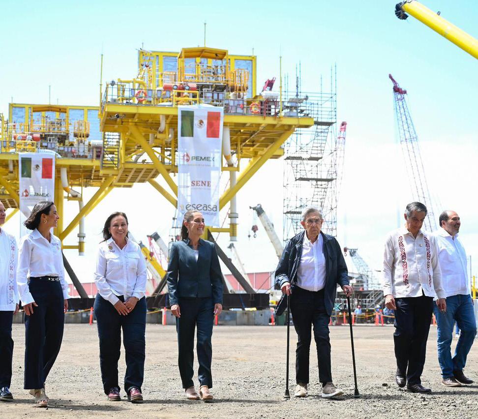 “En estos momentos significa avanzar en la soberanía energética, aumentar la producción nacional de gas natural, que es el siguiente objetivo, y las fuentes renovables de energía, además de seguir manteniendo la producción de petróleo y su procesamiento”, mencionó. De este modo, la jefa del Poder Ejecutivo federal comentó que su gobierno continuará con la promoción del desarrollo de fuentes renovables de energía, toda vez que existe capacidad de captación de energía solar y eólica, recursos geotérmicos, petróleo y gas natural. Destacó que, a 17 meses del comienzo de su mandato, se ha dado continuidad al proceso de fortalecer la soberanía y autosuficiencia energéticas, con nuevas leyes en favor de Petróleos Mexicanos (Pemex) y la Comisión Federal de Electricidad, y se ha reducido la deuda de la petrolera en 13 por ciento. Añadió que el pago a proveedores prácticamente alcanzó el 100 por ciento y se transforman diariamente casi 1.3 millones de barriles de crudo en gasolina y diesel. Además, en 2025 se produjeron 25 por ciento más de fertilizantes.
