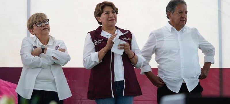 la leyenda “Rescata nuestras raíces indígenas”. “Venimos a decirles que vamos muy bien, muy, muy bien, y no dudemos que vamos a ganar esta batalla maestra, porque la vamos a ganar el 4 de junio”, dijo, para luego exponer sus propuestas en materia de salud, educación, movilidad, transporte, el campo, personas con discapacidad, jóvenes, cultura, deportes y otros. Ante militantes y simpatizantes, Delfina Gómez convocó a no dejarse presionar, al revelar que ya tienen conocimiento de que se han comenzado a retirar los apoyos a las mujeres que acuden a este tipo de eventos.