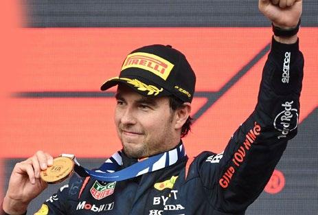 sexta victoria en la Fórmula 1 y poner de nueva cuenta el Himno Nacional de nuestro país junto al de Austria (por Red Bull) en lo más alto del podio. Verstappen no estuvo cómodo, algunas veces rozó en las apretadas curvas, pero su talento y el gran bólido que conduce le permitió finalizar segundo, a dos segundos del tapatío. El podio lo completó Charles Leclerc con su Ferrari, monoplaza que hoy no sufrió como en otras carreras, pero que sí evidenció estar muy lejos del poderoso auto que tienen los de la escudería de la bebida energética.