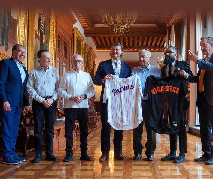 Con motivo de la Mexico City Series de la MLB, Andrés Manuel López Obrador, presidente de México, se reunió la mañana de este domingo en Palacio Nocional con el empresario Alfredo Harp Helú y con directivos de las novenas de las Grandes Ligas: San Francisco Giants y San Diego Padres. En el marco del segundo juego de Grandes Ligas a celebrarse este domingo en la Ciudad de México entre los Padres de San Diego y los Gigantes de San Francisco, el presidente de México, Andrés Manuel López Obrador recibió en Palacio Nacional a dos jugadores emblemáticos de ambas escuadras. De acuerdo a lo publicado en sus redes sociales, el mandatario dio a conocer que desayunó con los exjugadores Trevor Hoffman de los Padres y el mexicano Sergio Romo de los Gigantes, a quienes definió como dos “caballos del pitcheo”. Desayunamos y hablamos con pasión de béisbol con dos caballos del pitcheo: el mexicano Sergio Romo y otra gran leyenda del relevo, Trevor Hoffman”, mencionó el tabasqueño en su cuenta de Twitter. Además en la imagen también se dio a conocer que López Obrador sostuvo de igual forma una plática con autoridades de ambos equipos, así como dirigentes de Grandes Ligas y del beisbol mexicano, destacando la presencia de Alfredo Harp Helú.