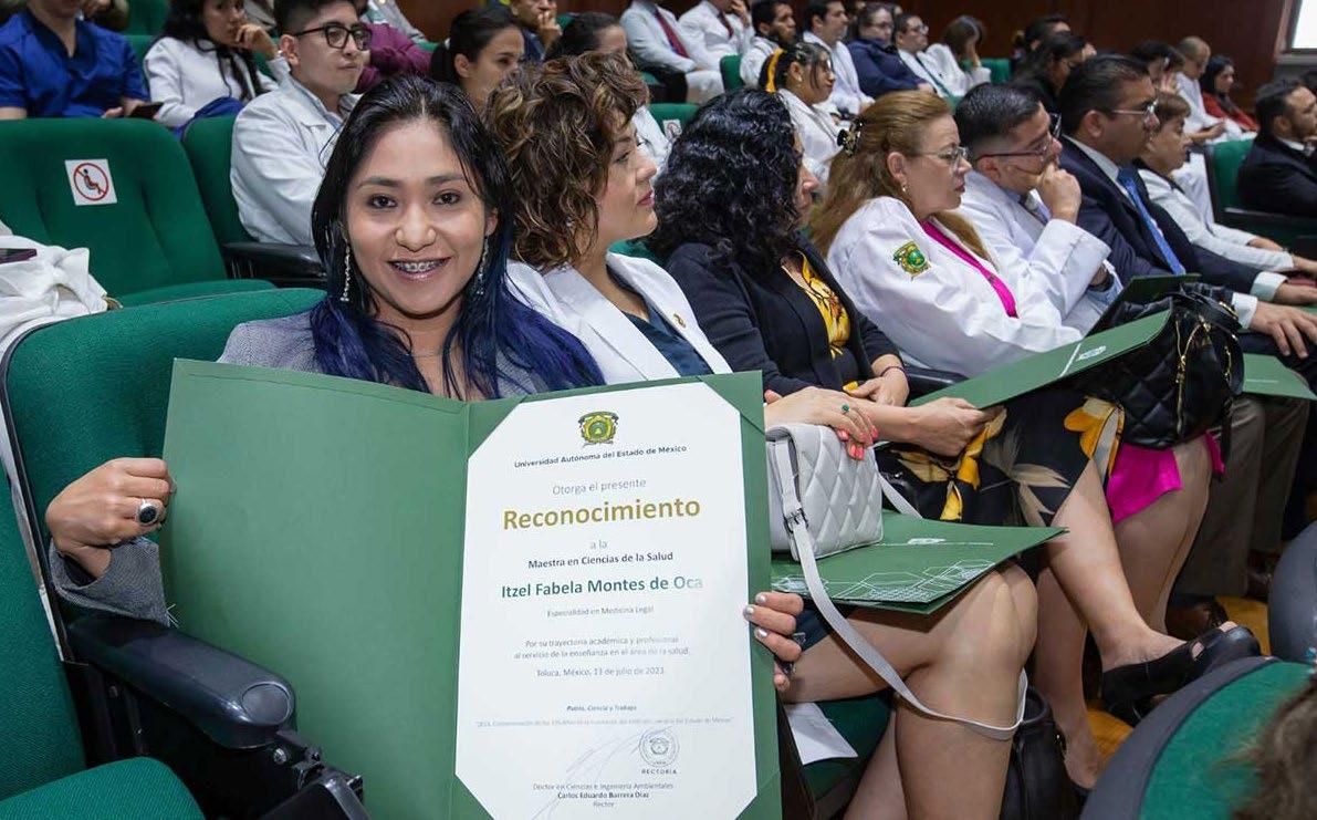 Durante su intervención, el secretario Técnico de Salud del Estado de México, Gilberto Bernal Sánchez, mencionó que actualmente la entidad mexiquense está formando a más de mil médicos internos y médicas internas de pregrado y más de cinco mil residentes, por lo que el binomio salud y educación toman una importancia fundamental para continuar formando personal de salud altamente capacitado. En el acto se entregaron 32 reconocimientos al profesorado médico especialista de la Máxima Casa de Estudios mexiquense, la Secretaría de Salud del Estado de México, el Instituto Mexicano del Seguro Social (IMSS), Instituto de Salud del Estado de México (ISEM), Instituto de Seguridad Social del Estado de México (ISSEMYM), Instituto de Seguridad y Servicios Sociales de los Trabajadores del Estado de México (ISSSTE), Instituto Materno Infantil del Estado de México (IMIEM) y la Fiscalía General del Estado de México.