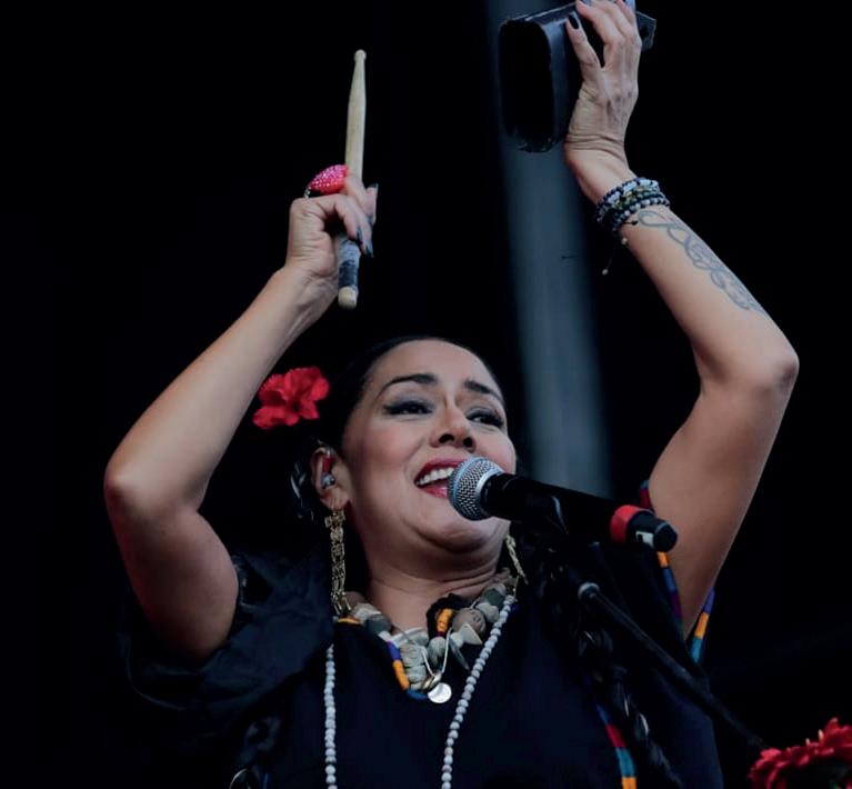 Con su potencia vocal, y un tambor con aires prehispánicos característicos de Lila Downs, la mexicana llegó a encender el escenario Escena Indio el sábado 18 de marzo a las 19:00 horas, agitando las maracas y luciendo un vestido tradicional completamente negro con detalles bordados de diferentes colores.