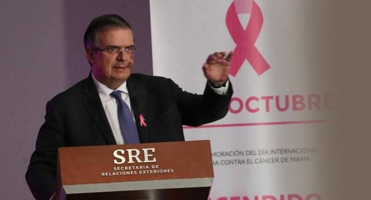 El canciller Marcelo Ebrard durante la ceremonia por el Día Internacional de lucha contra el Cáncer de mama.Carlos Santaella