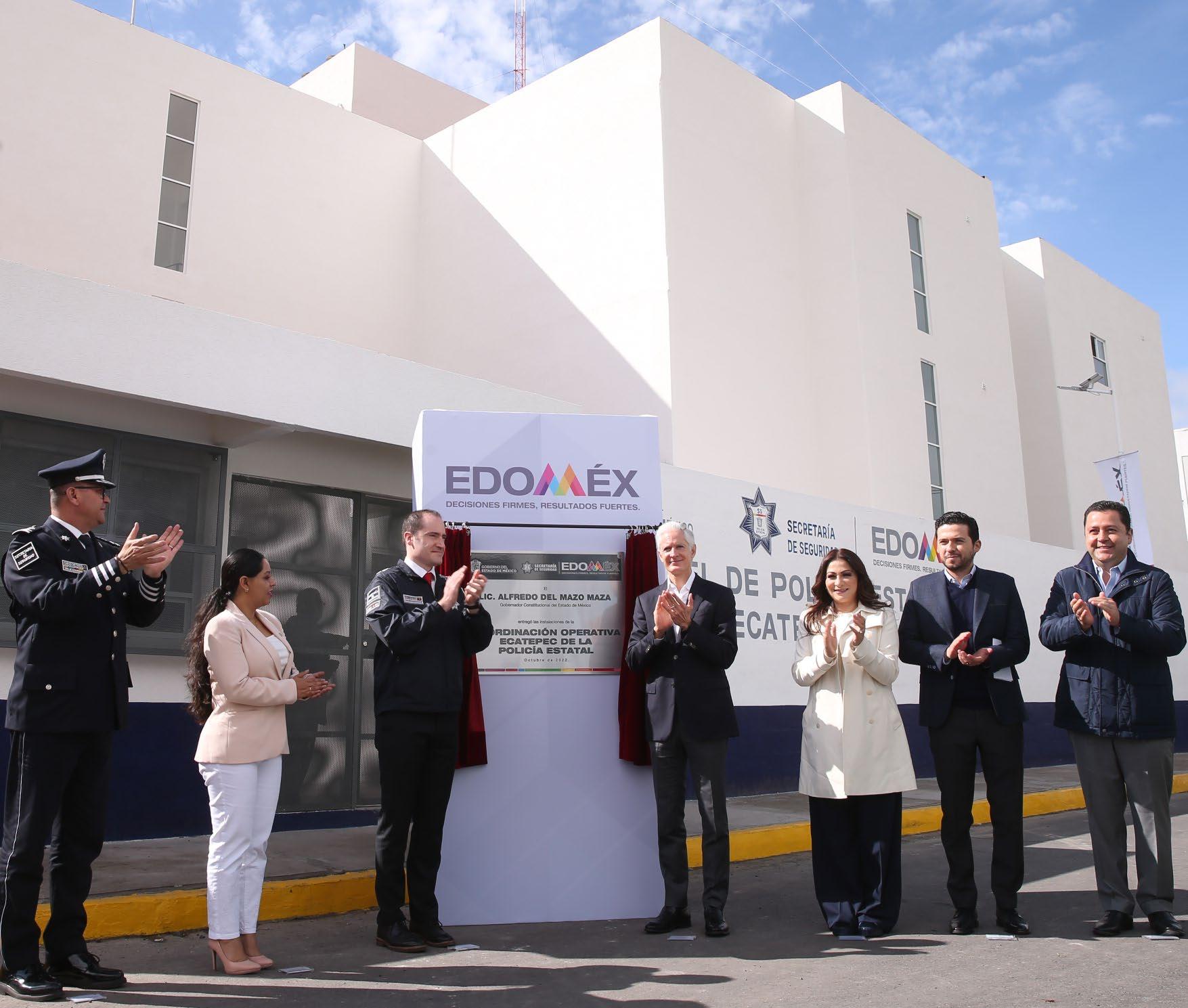 Román QuezadaEl gobernador Alfredo Del Mazo Maza entregó las Instalaciones de la Coordinación Operativa Ecatepec de la Policía Estatal, y aseguró que esta nueva infraestructura eficientará las tareas de seguridad en esta región del estado, al tiempo de brindar espacios laborales dignos a los elementos de esta corpo ración. Del Mazo Maza explicó que en este lugar estarán permanentemente 600 elementos de agrupamientos como Fuerzas Especiales, Policía de Género, Policía de Tránsito o de combate a robo de vehículos, cuya coordinación es fun damental para la operación de accio nes de seguridad a nivel local. “Nos da muchísimo gusto hacer entrega de esta instalación, esta Coordinación Opera tiva Ecatepec en donde, como compartimos hace un momento, estarán de manera permanente 600 elementos de la Policía del estado, entre las que destacan, Fuerzas Especiales, la Policía de Proximidad, la Policía de Tránsito y también la Policía de Género y también personal del área de combate al robo de vehículos, que formarán parte de estas instalaciones, en turnos de 200 elemen tos que estarán de manera permanente trabajando en estas instalaciones.