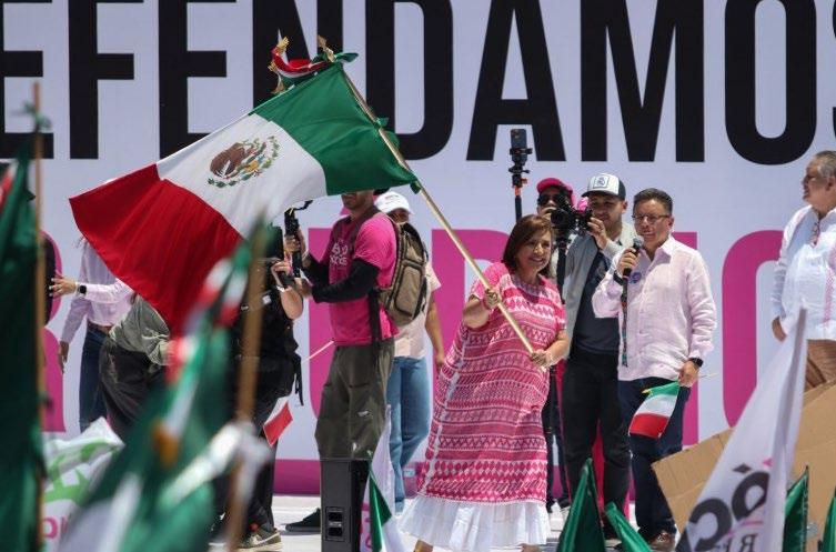 priorizado, como en los dos anteriores, dedicar varios días a prepararse. La Marea Rosa supuso un cambio obligado de planes. Para la oposición es clave llegar a la recta final de la contienda con la idea de que pueden dar la pelea y de que la carrera “no se acaba hasta que se acaba”, al menos ante sus seguidores. “Para mí, es muy importante demostrar que esta elección no está decidida, que no es un trámite, como dijo Sheinbaum, por eso estoy aquí”, explica Lorena Laboriel. La última marea fue diferente a las anteriores. Fue la más explícita de todas y rebasó en varios momentos la línea que separa la movilización ciudadana de un mitin partidista. Fue también más tensa que otras. Muchos accesos al Zócalo fueron cerrados por el Gobierno y hubo encontronazos con el campamento de la Coordinadora Nacional de Trabajadores de la Educación (CNTE), instalado desde el pasado miércoles y que se negó a replegarse de la plaza. Muchos de los asistentes a la manifestación estaban convencidos de que la presencia de la CNTE era una “provocación” y “juego sucio” del presidente. “No nos mandó nadie”, asegura Guadalupe Ibarra, una profesora jubilada de 64 años, mientras una simpatizante de la marea grita del otro lado de un improvisado cordón, un mecate que apenas divide ambas protestas. “Que nos perdonen, pero nosotros no podemos estar con el PRI y el PAN, que tanto daño hicieron a la educación”, justifica Ibarra. Además, hubo tensiones sobre el cerco metálico que dividió a ambas manifestaciones, retirado por los manifestantes de la Marea. Hubo protestas por si iba a estar izada la bandera de México en la plaza central, un pleito que llegó hasta los tribunales y que, finalmente, permitió que fuera alzada en el centro de la Plaza de la Constitución por miembros del Ejército. Hubo reclamos contra la presidenta del INE, Guadalupe Taddei, que criticó que la manifestación usara el color rosa, el color con el que se identifica al árbitro electoral. Hubo sospechas sobre si las autoridades de la capital decretaron la contingencia con la única idea de que no hubiera gente en las protestas en el centro de la ciudad.