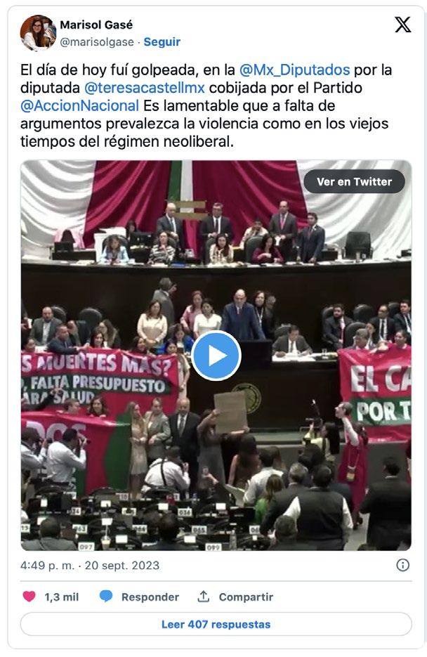como en los viejos tiempos del régimen neoliberal” sentenció Gasé. En su mensaje, la diputada anunció que va a plantear una denuncia por violencia política de género, “una mujer tan violenta no puede ser representante popular”, dijo M