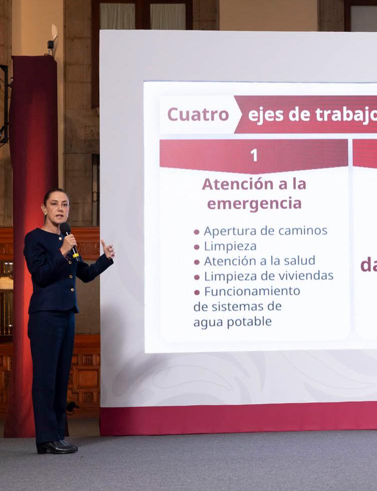 La presidenta presentó cuatro ejes de atención tras las afectaciones por las lluvias que cayeron en cinco estados.