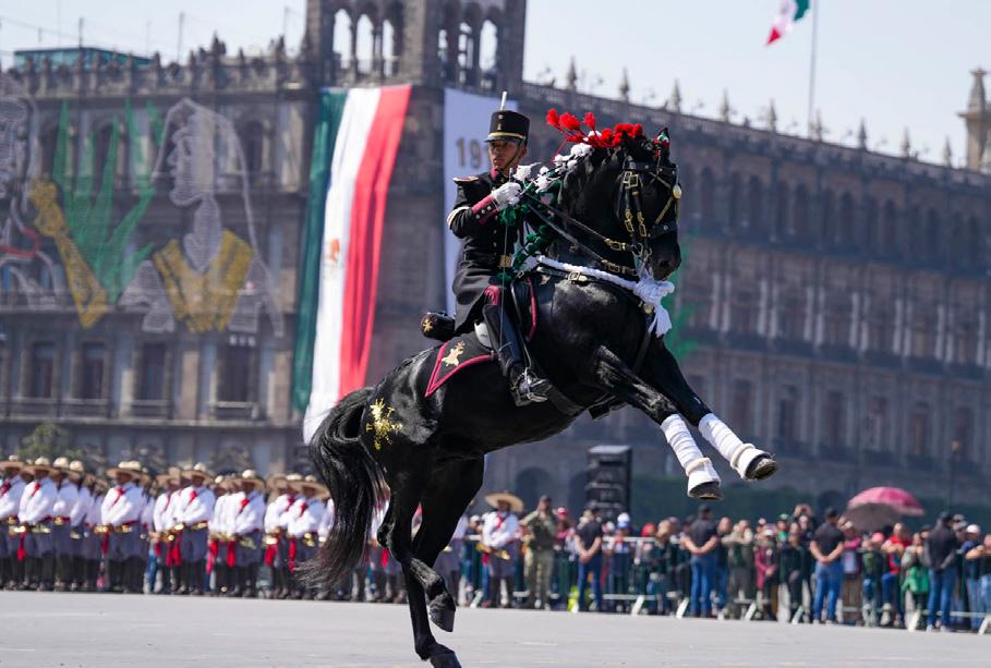 ante la Mandataria estatal, participaron en el desfile una Bandera Monumental, 10 guiones representativos, 5 mil 087 personas, 58 vehículos, siete carros alegóricos, 17 canes, 69 equinos, dos halcones, y cuatro aeronaves. Para conmemorar el 115 Aniversario de la Revolución Mexicana, se sumaron los esfuerzos de la Secretaría de Seguridad, Secretaría de Educación, Secretaría de Salud, Secretaría de Bienestar, Oficialía Mayor, Secretaría del Medio Ambiente y Desarrollo Sostenible, así como Defensa Nacional, Guardia Nacional, Tribunal Superior de Justicia, Pentatlón Deportivo Militarizado Universitario, Ayuntamiento de Toluca, la Universidad Autónoma del Estado de México y la Cruz Roja.