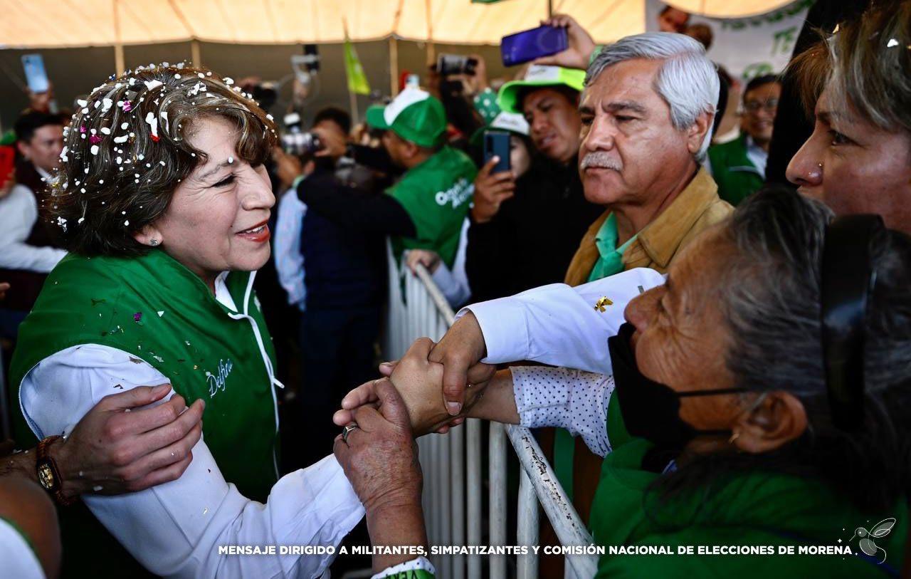 Delfina Gómez es una “mujer buena, sensible, echada para adelante y cercana a la gente”, expresó el PVEM que arropó a la precandidata única de la 4T