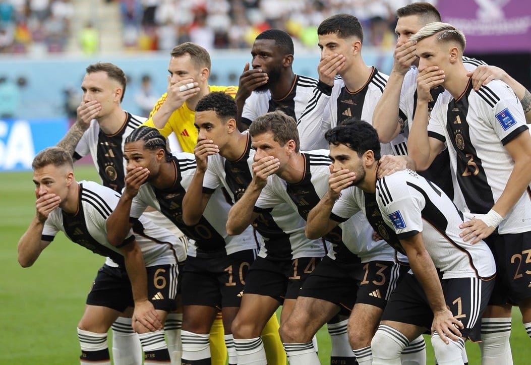 Los jugadores de la selección de Alemania se taparon la boca en la foto de equipo antes de su primer partido en el Mundial en una aparente protesta contra las acciones de la FIFA acerca de sus planes de portar un brazalete antidiscriminación contra la anfitriona Qatar