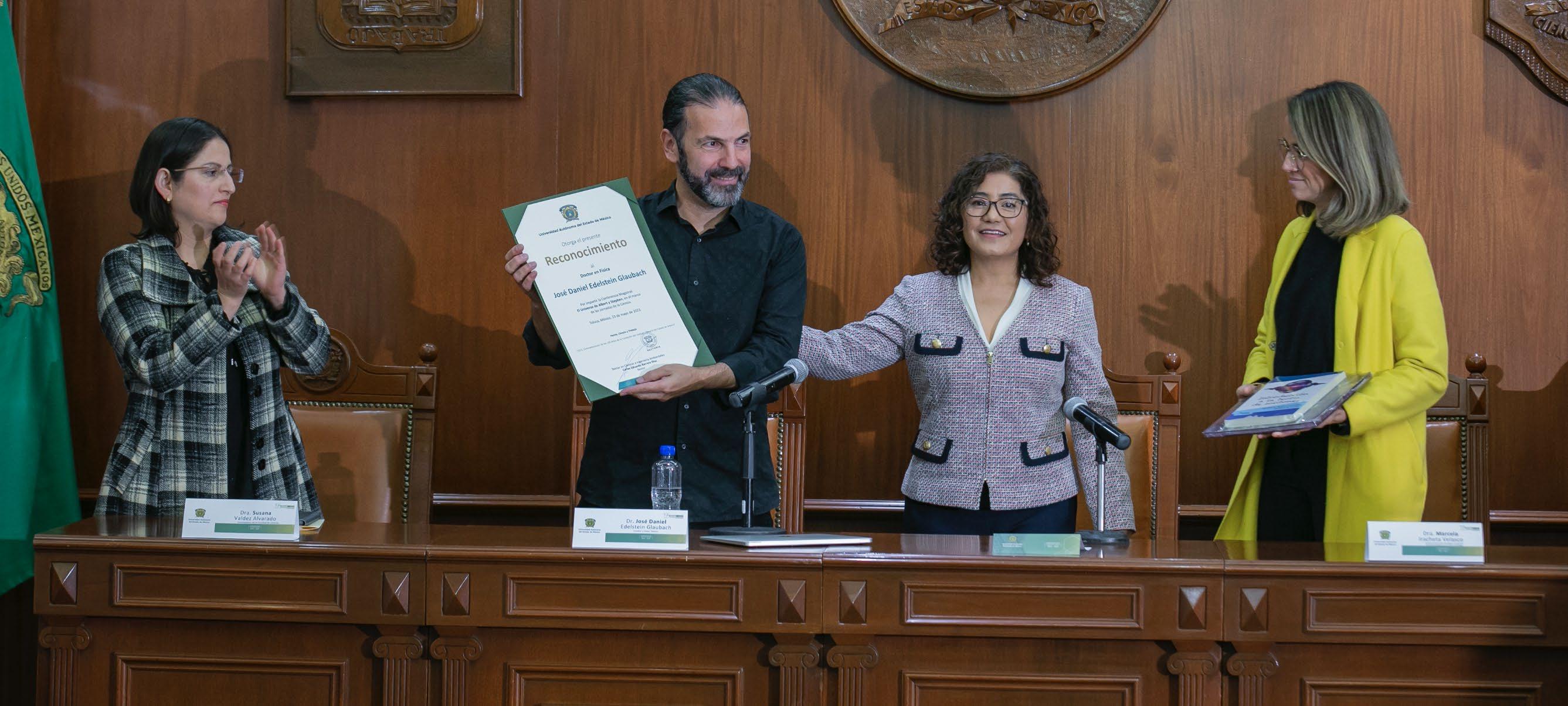 Edelstein es físico teórico, doctorado en la Universidad de la Plata, donde fue docente. Hizo algunas estancias posdoctorales en las universidades de Compostela, Harvard y el Instituto Superior Técnico de Lisboa. Actualmente es profesor en el Departamento de Física de Partículas de la Universidad Compostelana. Eldestein, quien fue cercano al teórico Stephen Hawking, también es divulgador de la ciencia y ha publicado más de medio centenar de artículos científicos en las principales revistas científicas internacionales. Durante la conferencia magistral estuvieron presentes la directora para la Internacionalización de la Secretaría de Investigación y Estudios Avanzados de la UAEMéx, Mariana Ortiz Reynoso, y la investigadora de la Facultad de Ciencias, Susana Valdés Alvarado, así como investigadores y comunidad estudiantil universitaria. M
