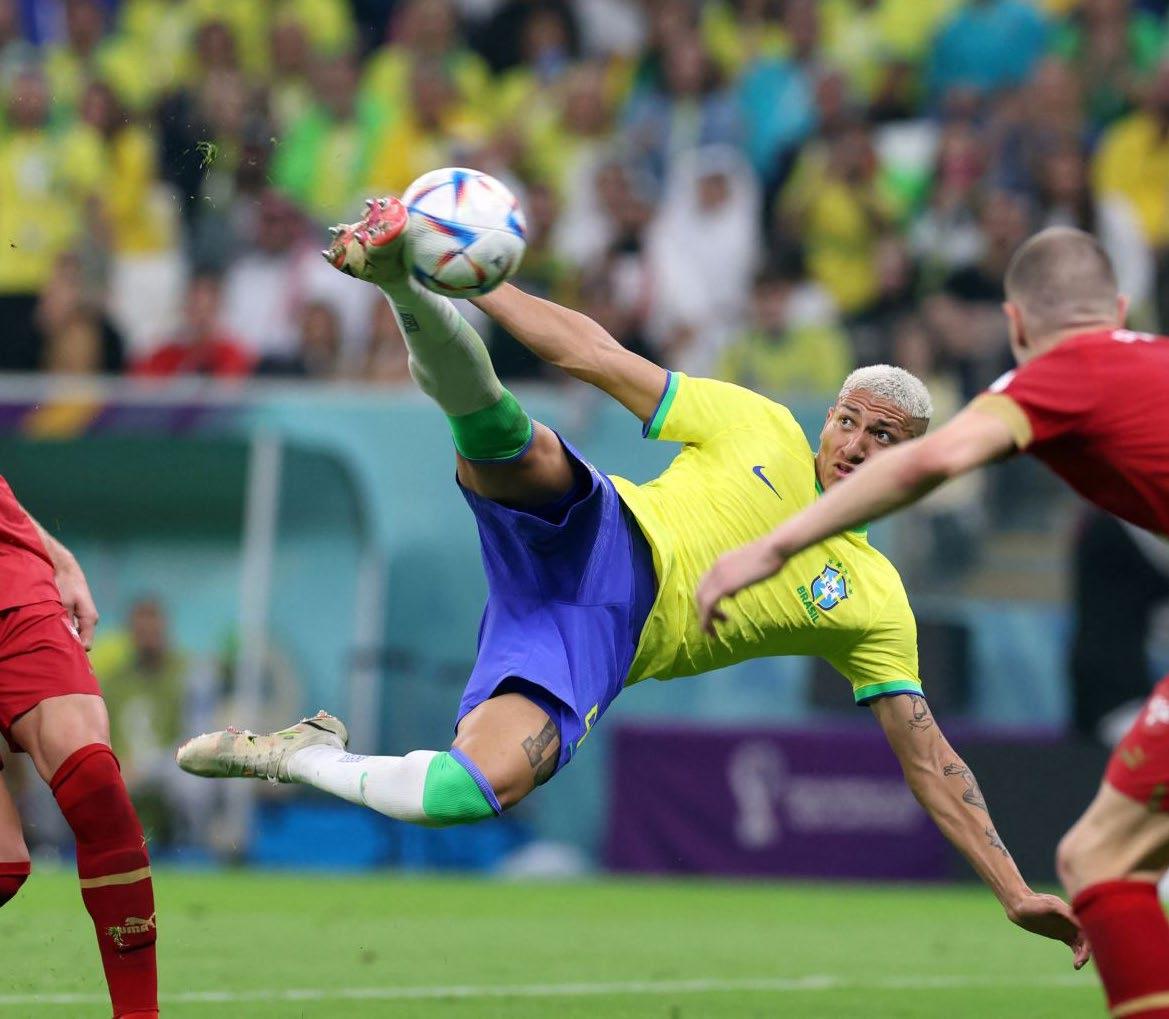 Con una bella definición de media tijera, el delantero selló el doblete en el segundo tiempo que le dio a la Cana rinha una sufrida victoria 2-0 ante Serbia en su debut en la Copa Mundial. A los 73 minutos, Richarlison se elevó por los aires y con la derecha calzó de primera el balón. Brasil sufrió para romper el cerrojo defensivo de Serbia. Richarlison abrió la lata al capitalizar un rebote a los 62 tras una jugada iniciada por Neymar. Vinicius Junior asistió en ambos goles. Neymar, en busca de su primer gran título con Brasil, fue zarandeado toda la noche por los defensores serbios, absor biendo nueve faltas. El astro sigue con 75 goles con la selección, a dos del récord absoluto de Pelé., rompió el récord de