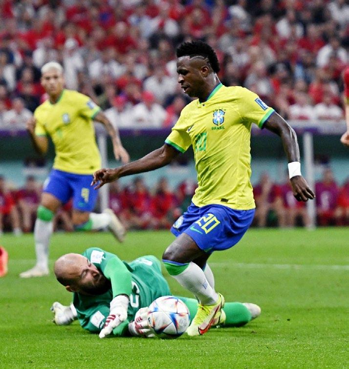 El delantero de Brasil rompió el récord al convertirse en el jugador que más fal tas recibió en lo que va de la Copa del Mundo con un total de nueve infracciones recibidas. La primera mitad le hicieron cinco infracciones y en el segundo tiempo recibió otras cuatro. Al final, Neymar dis putó 80 minutos antes de salir de cambio por Antony. Sin embargo, al salir, se vio en la transmisión la frustración de Ney Jr, quien se llevó la camiseta para taparse la cara. Además, se quitó los botines y las calcetas para enseñar lo inflamado que está su tobillo. El siguiente partido de Brasil será el lunes 28 contra Suiza. Hasta entonces, se le realizarán evaluaciones médicas a la estrella brasileña para deter minar la gravedad de la lesión.